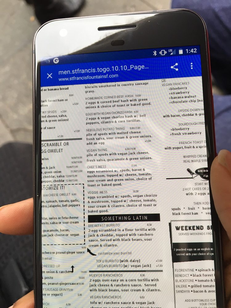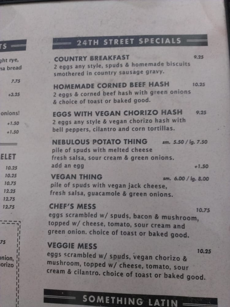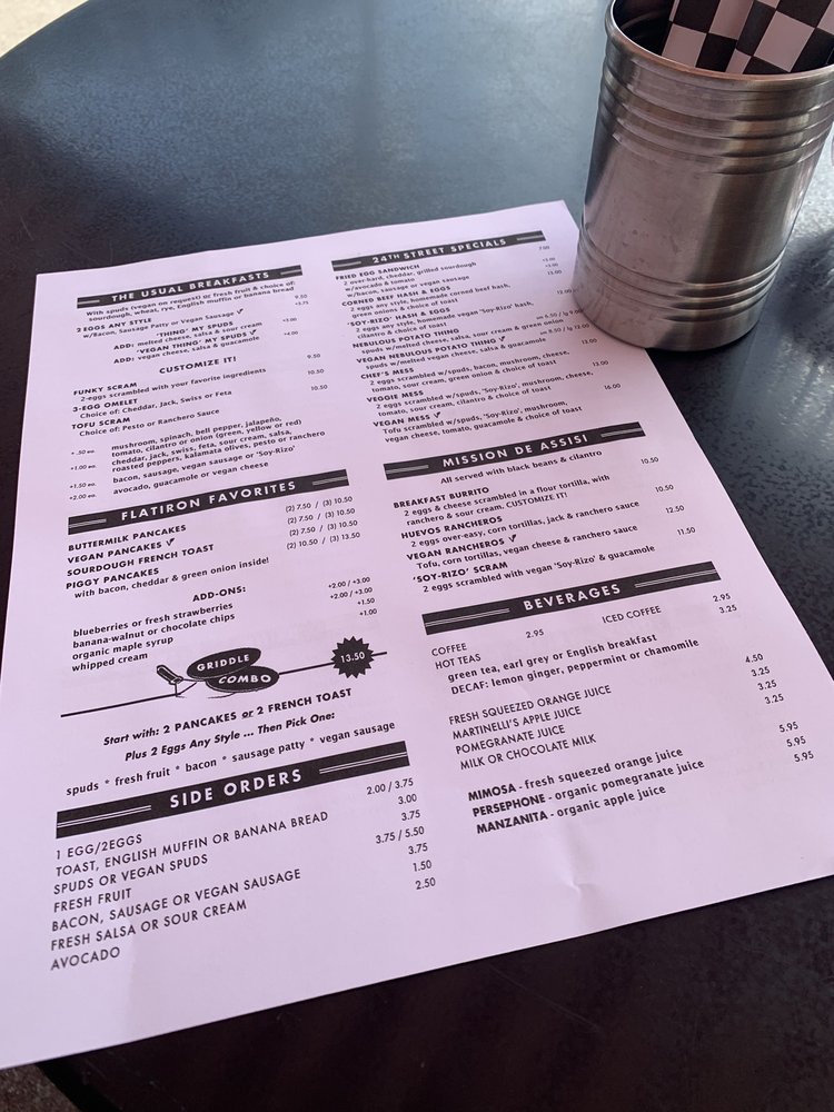 St. Francis Fountain, located in San Francisco, offers a diverse menu ranging from sandwiches and burgers to breakfast and brunch options. With a charming vintage soda fountain interior, the diner is known for its vegetarian and vegan-friendly dishes, making it a go-to spot for those following special diets. Customers rave about the flavorful Vegan Rancheros, Devil Burger with Seitan, and loaded Nebulous Spud. The prices are reasonable considering the area, making it a favorite among locals and visitors alike. From the perfectly fried egg sandwiches to the creative vegan pancakes, the menu provides a variety of sweet and savory options for everyone. Overall, St. Francis Fountain stands out as a top breakfast and brunch spot in the city, offering delicious meals in a hip and casual setting.
